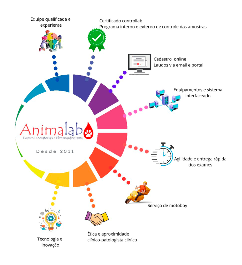 Apresentamos dedicação exclusiva na área laboratorial e temos o intuito de estreitar o relacionamento entre o patologista clínico e o médico veterinário.Sempre pensando na satisfação de nossos clientes, realizamos os exames com qualidade e eficiência, prezando, pela excelência no atendimento e suporte aos nossos clientes médicos veterinários. Tudo isso é resultado de constante aperfeiçoamento e atualização.